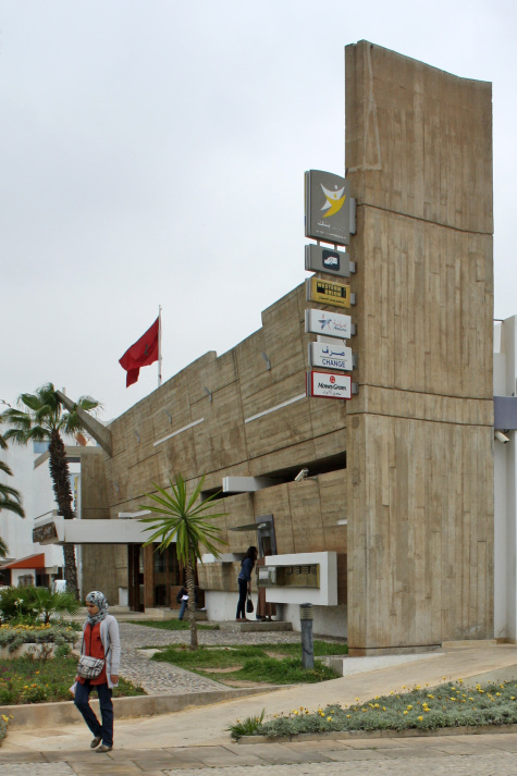 The exposed concrete building was realized as part of an extensive urban renewal plan for Agadir supervised by Zevaco and others following a major earthquake in 1960. It is part of the architectural ensemble around the central square.