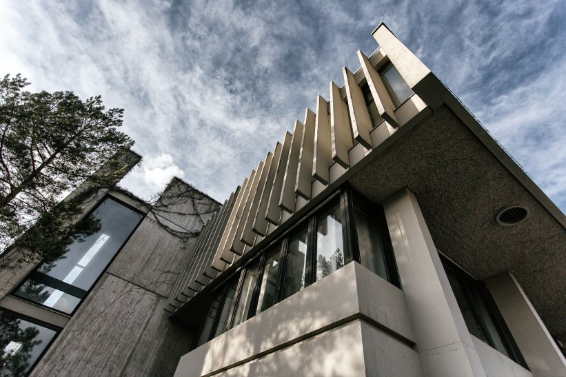 A composition of exposed concrete squares and windows hidden behind concrete slats distinguish the building and are very characteristic of the time. Peter Biedermann and Werner Böninger competed against 72 architectural firms and finally won the competition with their idea for a town hall cast entirely in concrete. Not all citizens liked the monstrous concrete building, but it proved itself and the architects were awarded the Architecture Prize of the Association of German Architects (BDA) in 1969. The massive entrance portals, the window frames and even the original chairs in the conference hall still exist today!