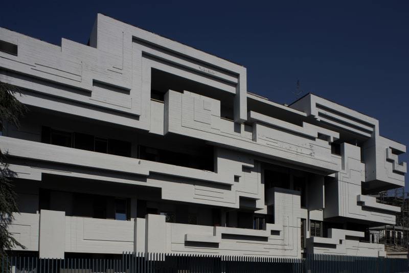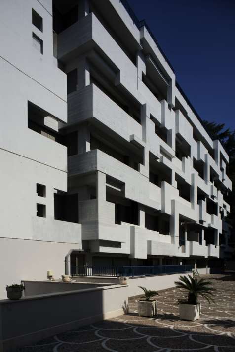 The buildings are arranged to establish a close connection between them. The floors are welded together with joints both vertical and horizontal to give continuity to the architectural whole and contribute to a certain privacy in an open and dynamic spatiality of related forms. The volumes, while admitting a functional conception, in fact come to express themselves outside of any conformism and rules that are not considered acceptable a priori. A solid reasoning informs "the whole" even if there is always a will to transgress, towards customs that are always to be questioned. It is a constant search for creativity and innovation, even if in opposition to the so-called “normality” of habitual thought. The line of a creative sincerity is always present in overcoming any constraint to the freedom of our thought for the architecture. Translated from Italian, written by Saverio Busiri Vici