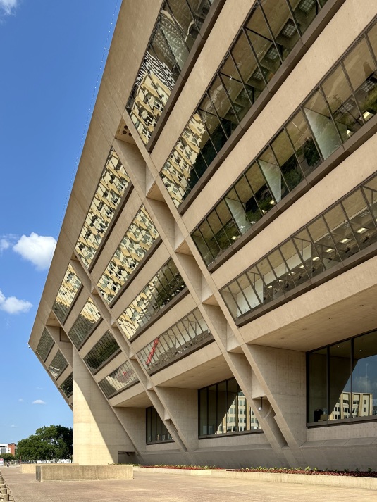 Pei’s building for Dallas emerged in the course of the city’s effort to reinvent its public image after the assassination of John F. Kennedy in 1963 and was positively received even before its completion. In 1976, the New York Times described it as “a turning point for the city,” characterizing it as “calculatedly symbolic, and overwhelmingly strong” and as a decisive architectural image-maker for Dallas itself. Together with Boston City Hall (1962–1968), it has been regarded as “among the most interesting urban constructions of the twentieth century.”