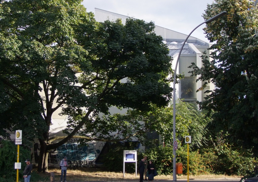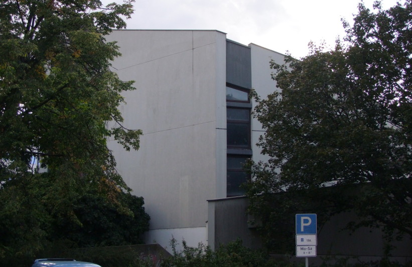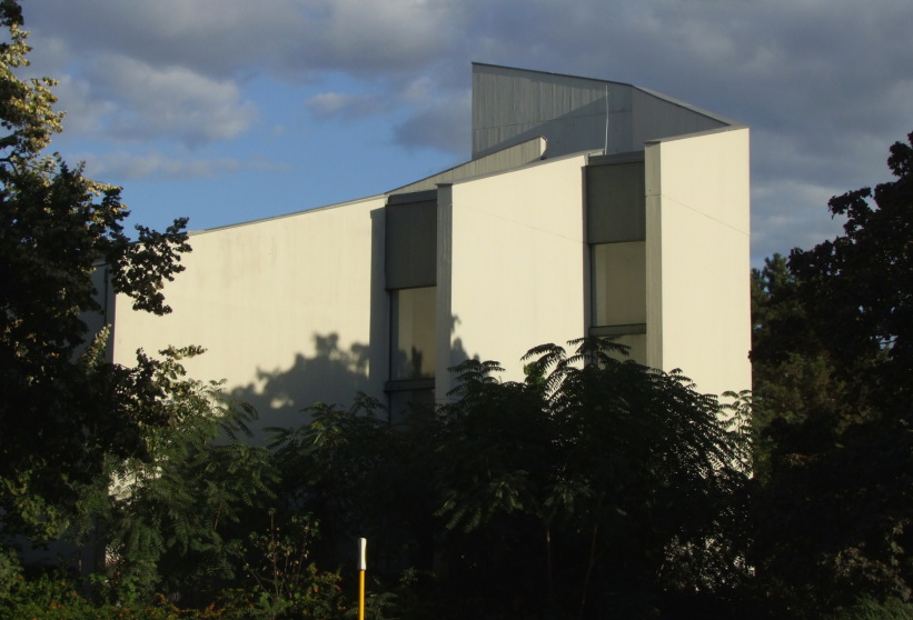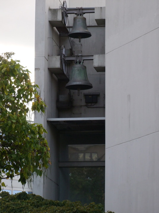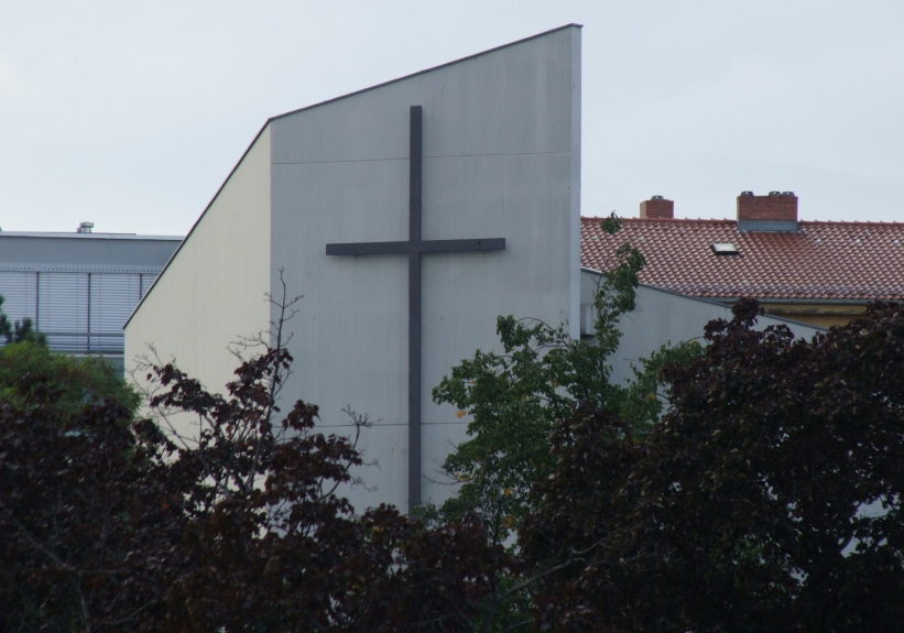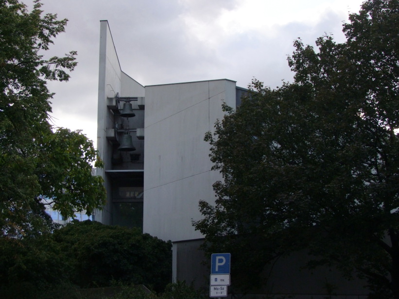 The church built by architect Fritz Bornemann is the successor of the former "Dankeskirche", which was heavily damaged during the Second World War. The steel skeleton building is encased in exposed concrete and has a staggered structure with the use of individual walls. Behind the front wall are the church tower bells.