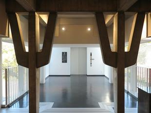 The building is a modernist building completed in 1965 and features the three-story "To-kyou" structure found in ancient Japanese shrines and temples.