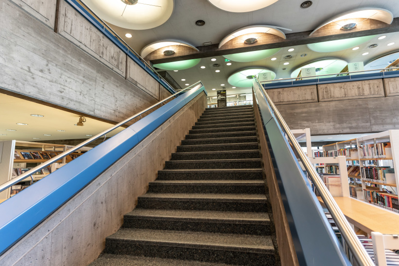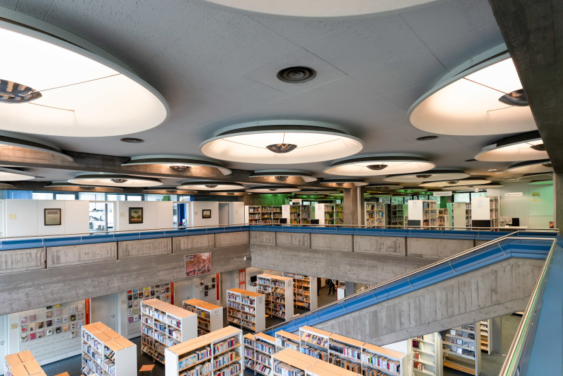 In 1970 the new municipal library in Sindelfingen was opened. Following the example of city libraries in Scandinavia, England and America, various innovative elements were implemented in this library building, including a music library, a skylight gallery, a lecture hall and a roof garden. The fact that two additional reading rooms were added made it possible that there was also enough space for author readings, exhibitions and library concerts.