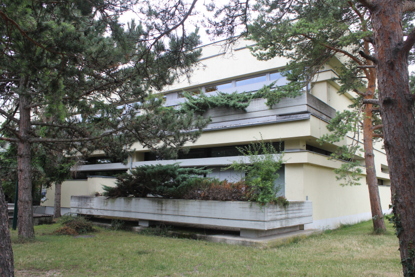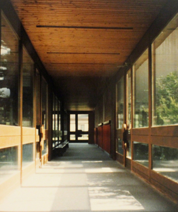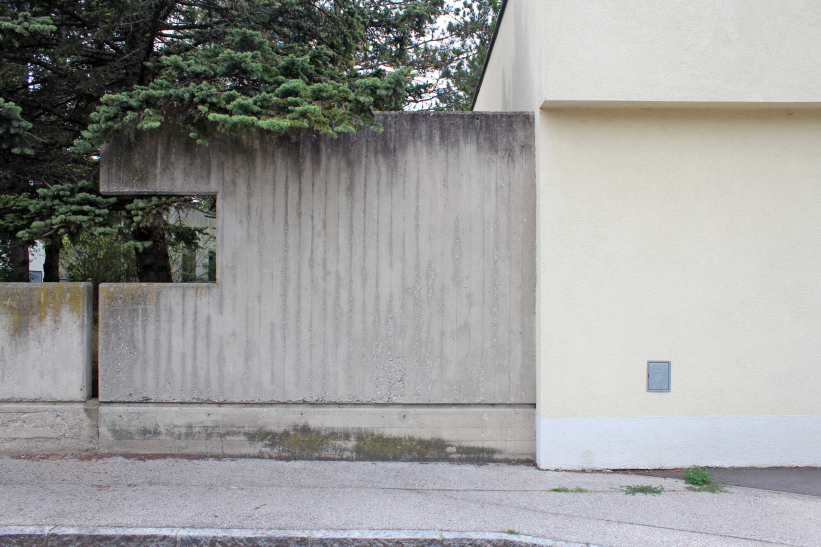 In 1972, Matthias Szauer and Gottfried Fickl won their second school construction contract in Lower Austria. After an invited competition, they were awarded the contract for the construction of a new elementary school in Felixdorf. In this municipality, a school building was subsequently erected in the years 1973-1974 according to the model that had already proven itself several times. The center of the complex is a two-story, flat-roofed classroom wing, which is organized around a hall with a central staircase and which is open on the first floor on the southern side to the schoolyard in front. This open area was framed on two sides, on the east by a school caretaker's apartment and on the west by a gymnasium structure, and thus became a courtyard zone protected from view. In this courtyard there is also - in front of the glass wall of the hall - a dominating chimney that towers over the entire complex.